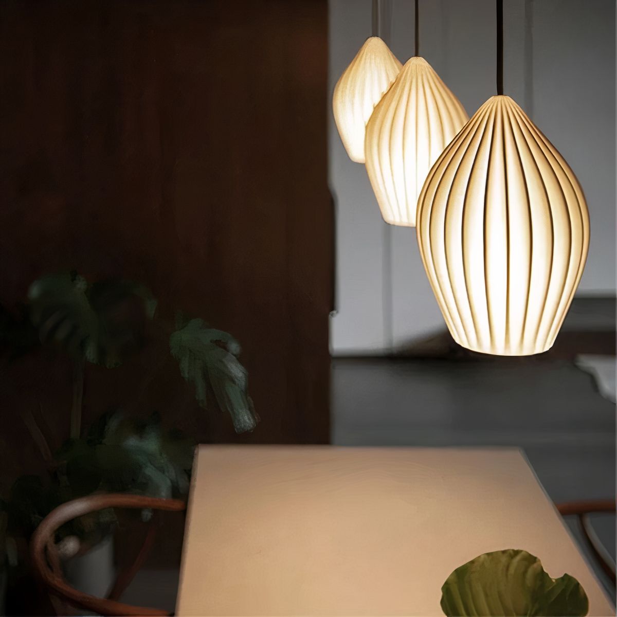 Plafonnier suspendu pétales ondulés en céramique blanche